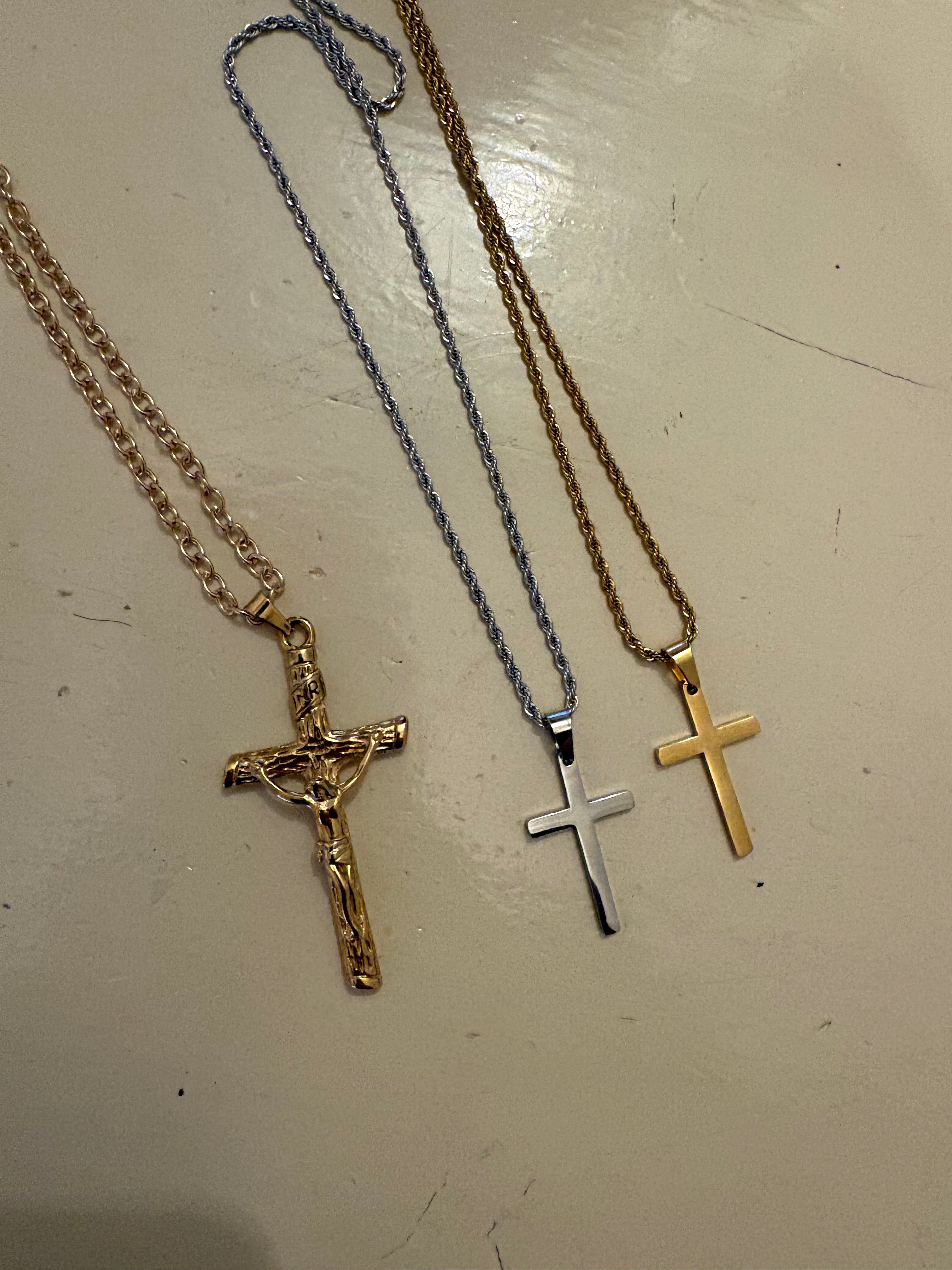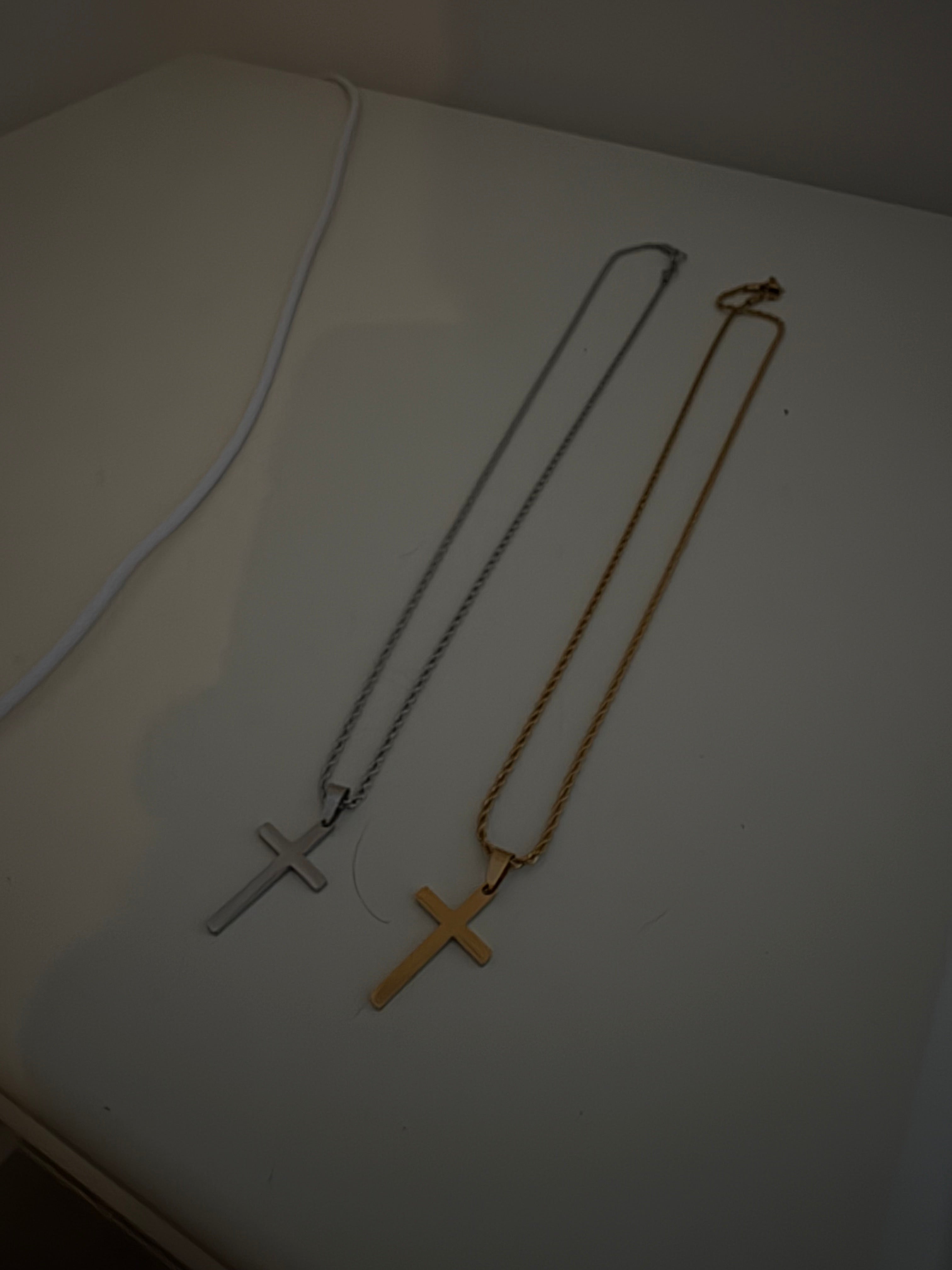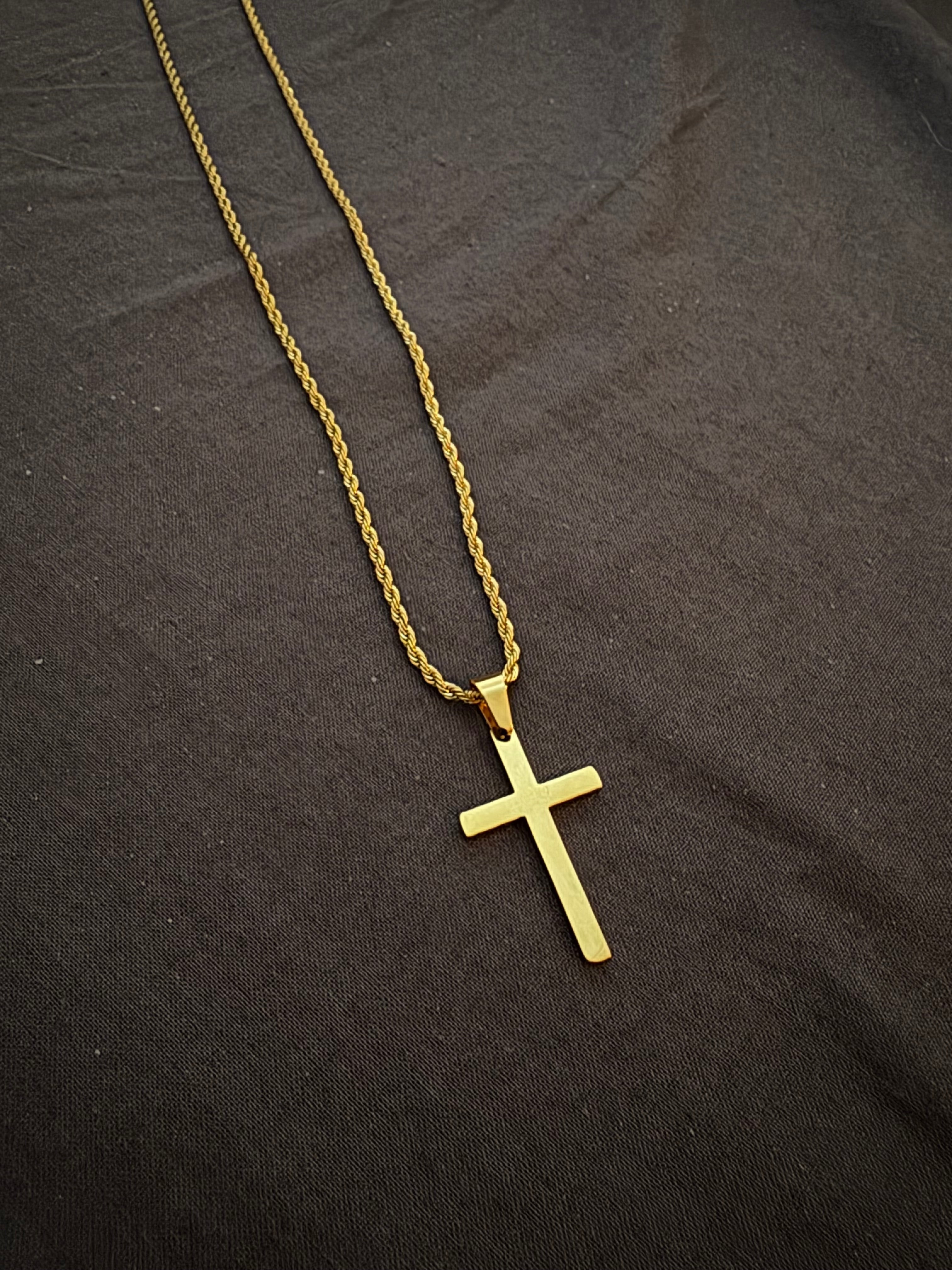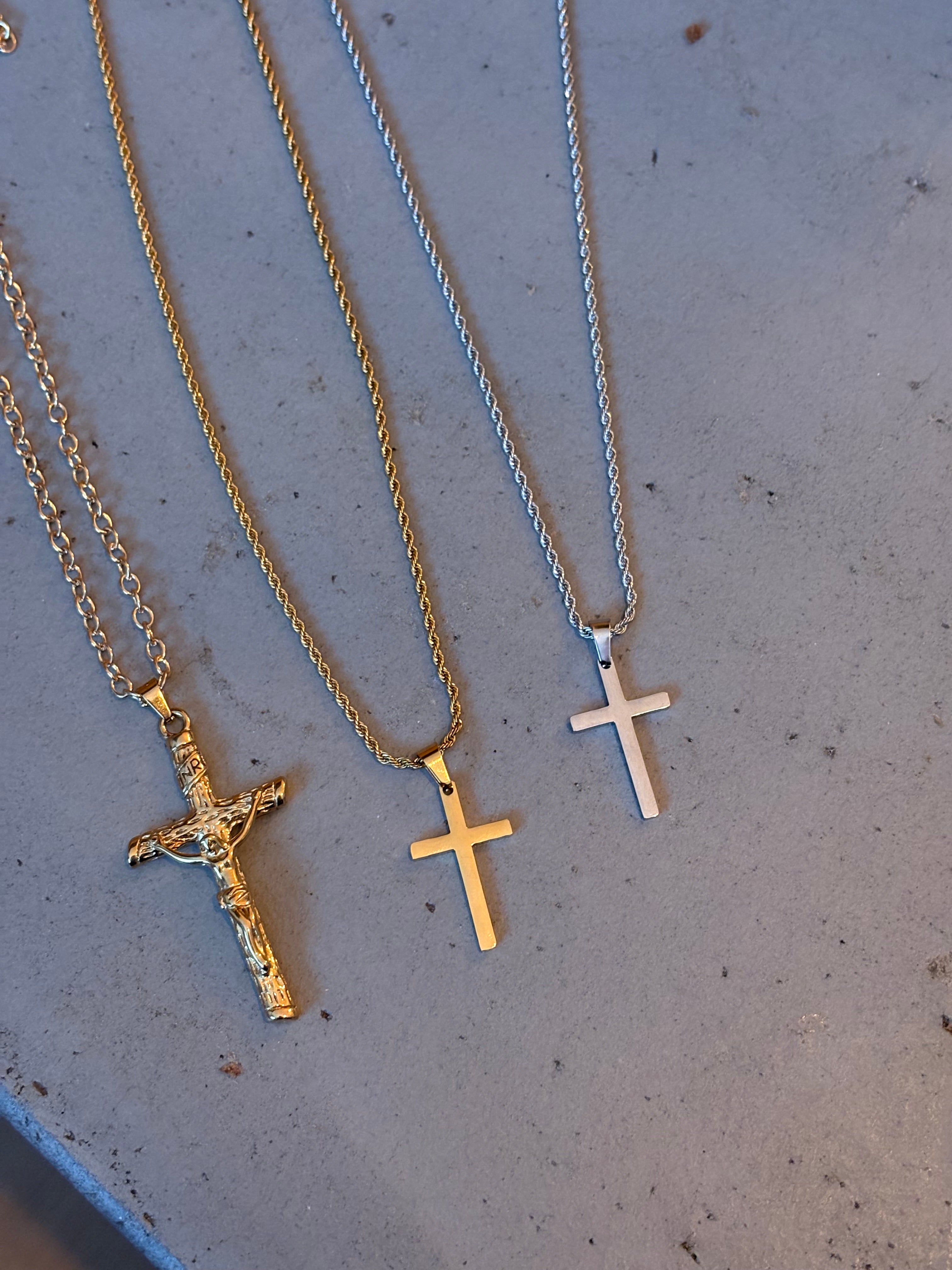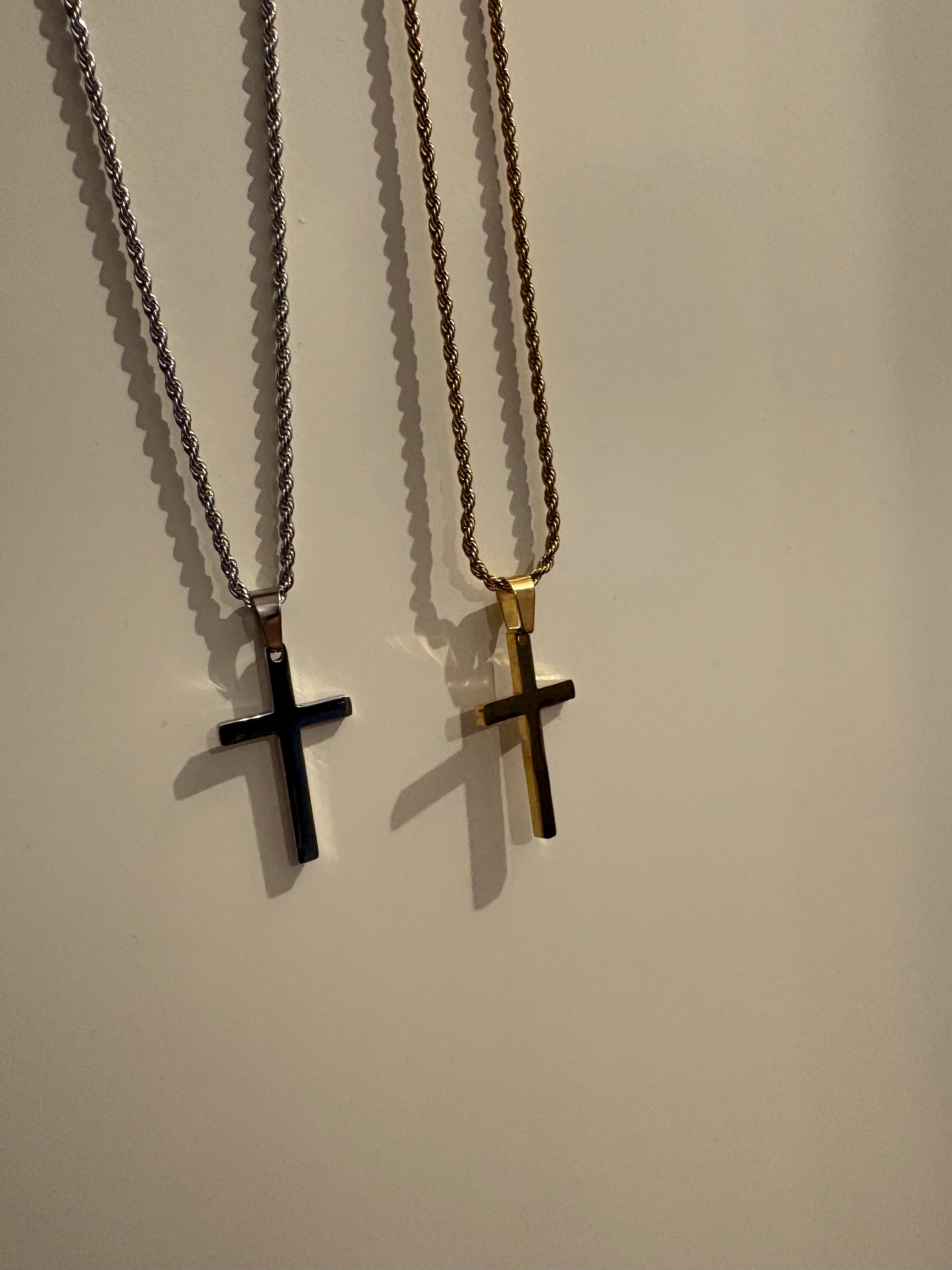 OUR SIGNATURE CROSS NECKLACE — NOW IN A HAMMERED FINISH.
